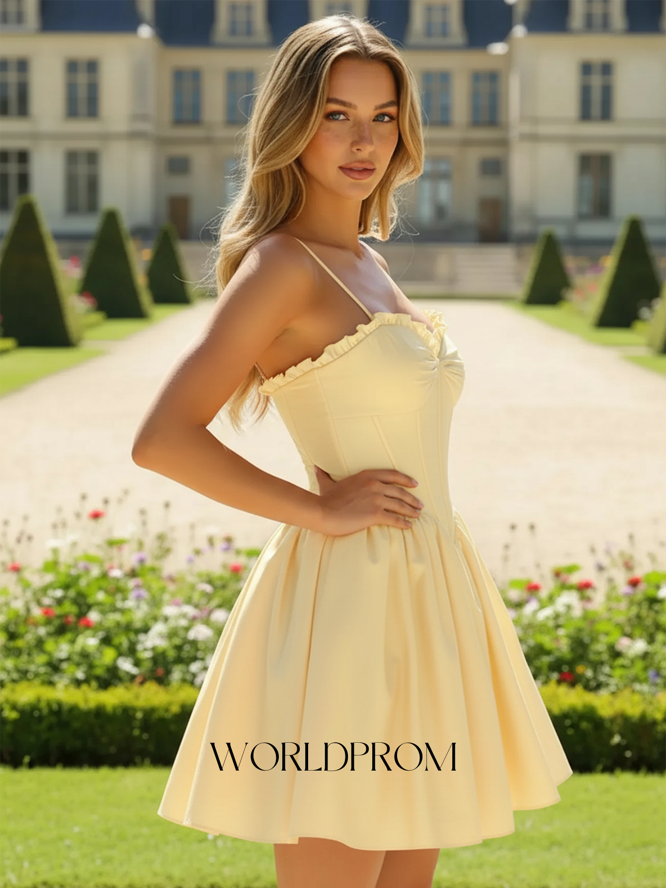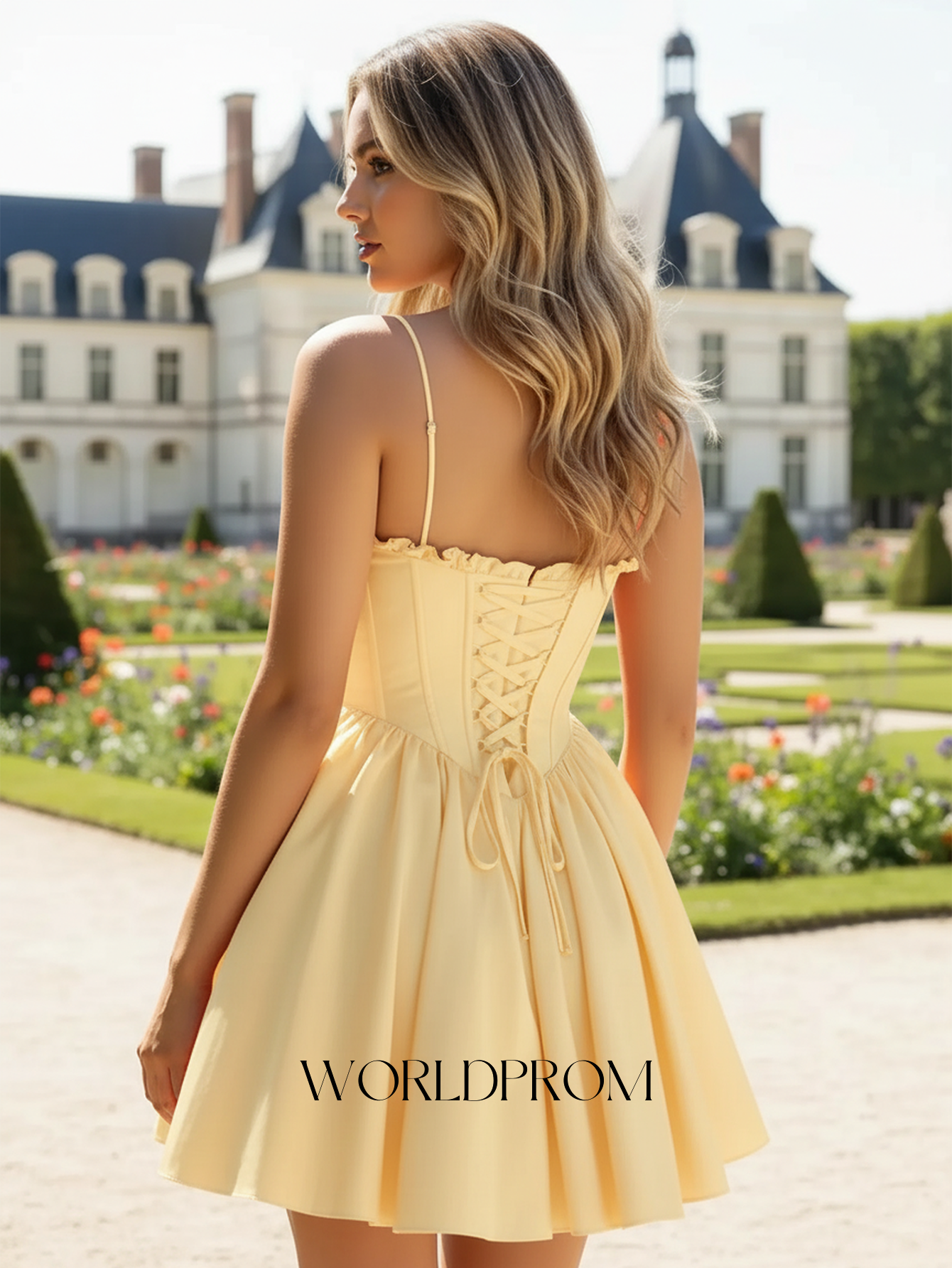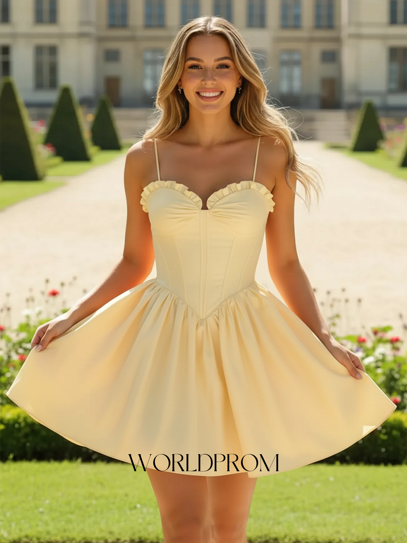 Sweetheart Boned Mini Ball Gown Prom Dress - Yellow