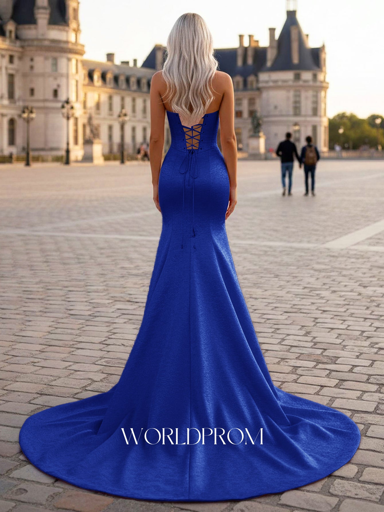 This satin prom gown features lace bust on the bodice. The strapless dress has a sweetheart neckline and split hem. Worldprom mermaid prom dresses are ideal for party, evening or festivals.