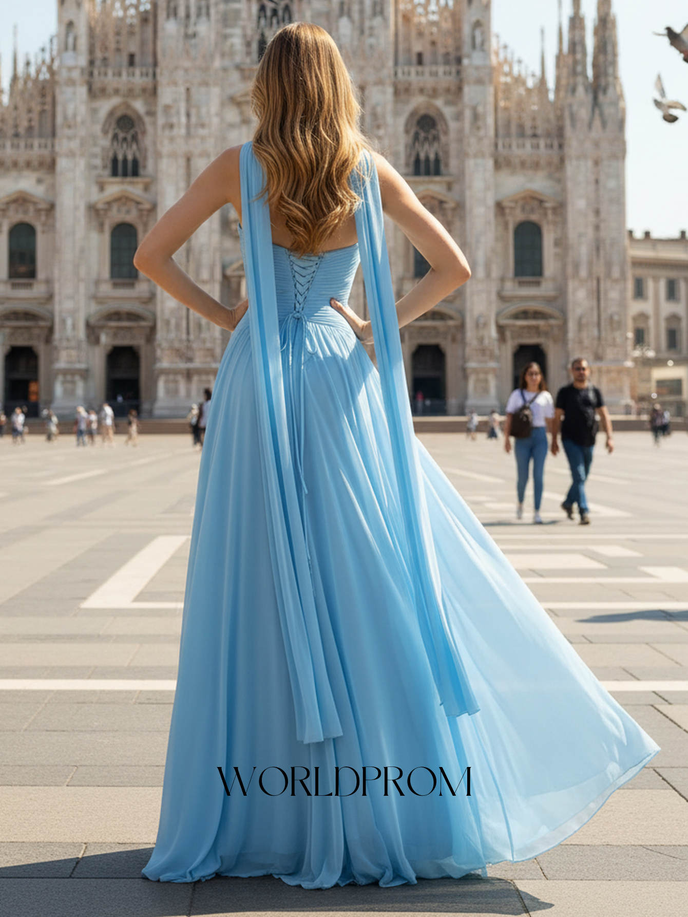 This chiffon prom gown features ruched bust with shawl on the bodice. The strapless lace up dress has a sweetheart neckline and pleated split hem. Worldprom a-line prom dresses are ideal for party, evening or festivals.
