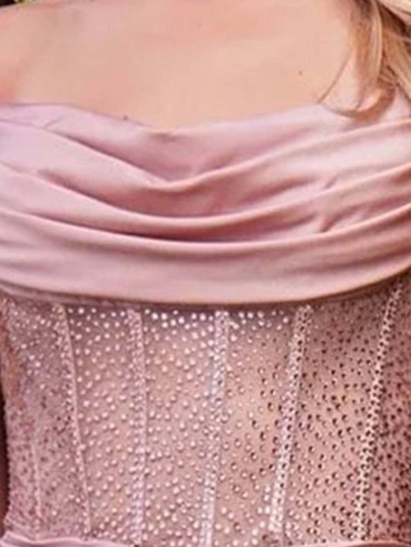 Sweetheart Spaghetti Strap Beading Ruched Illusion Bodice Mermaid Prom Dress With Slit - Rose Gold