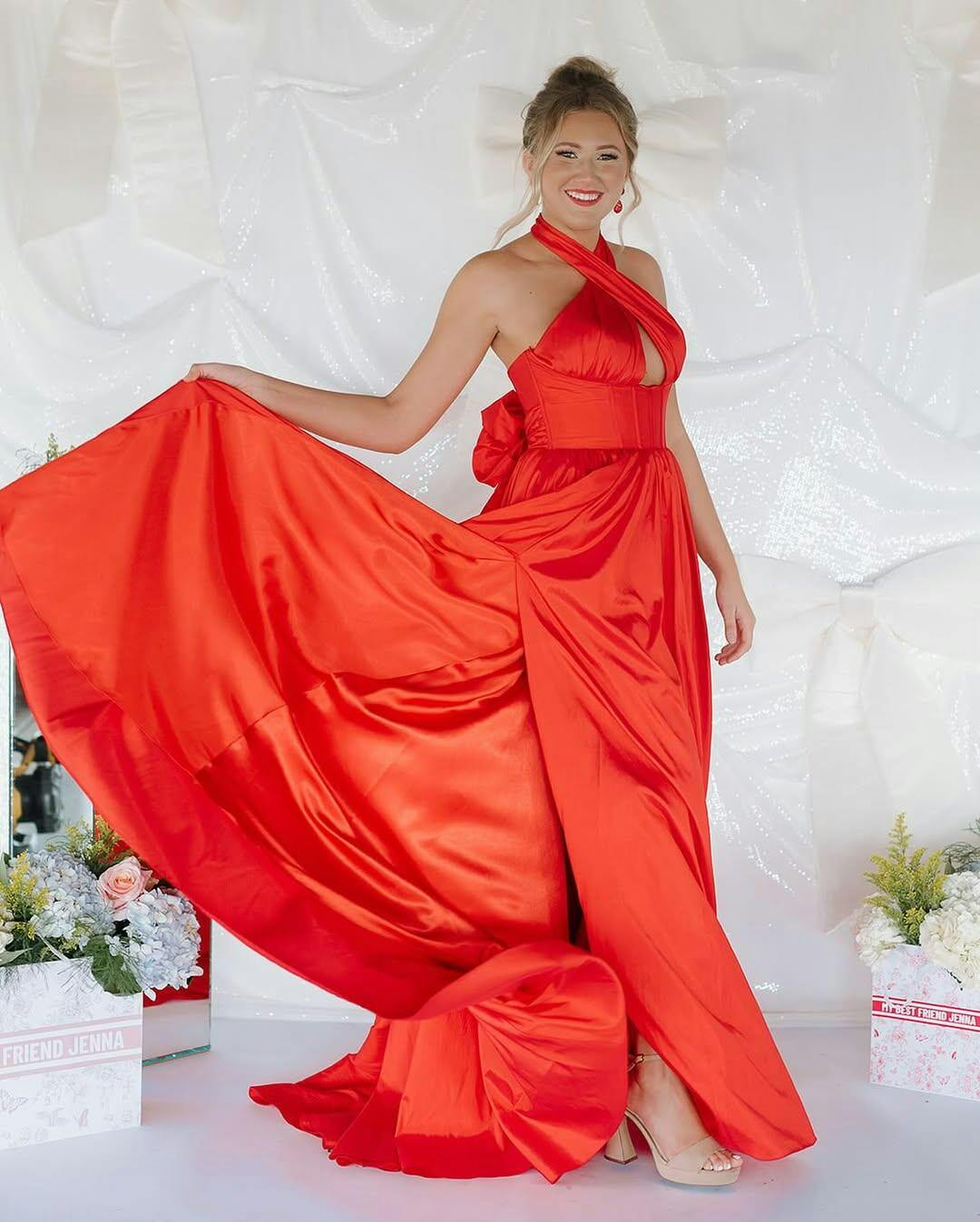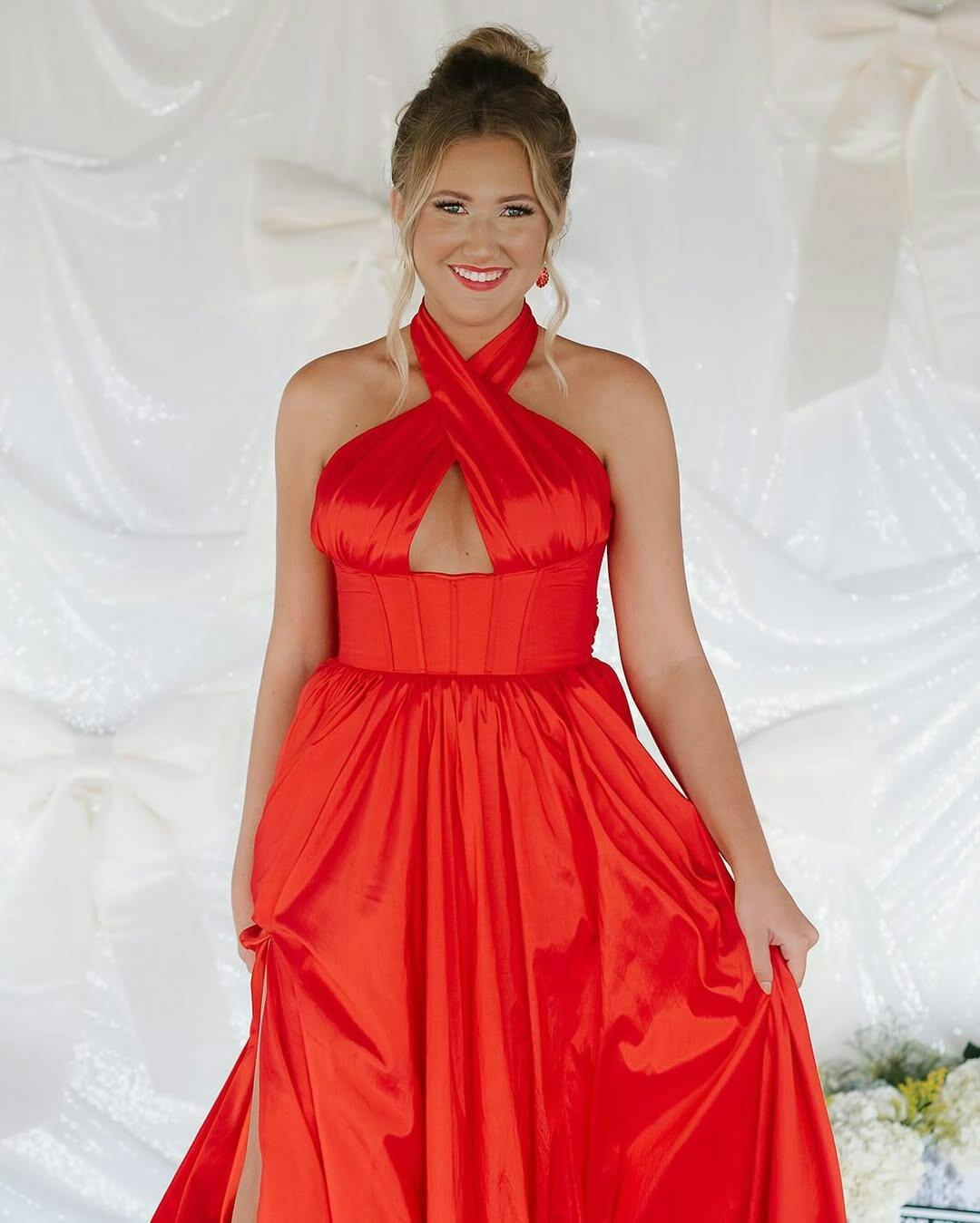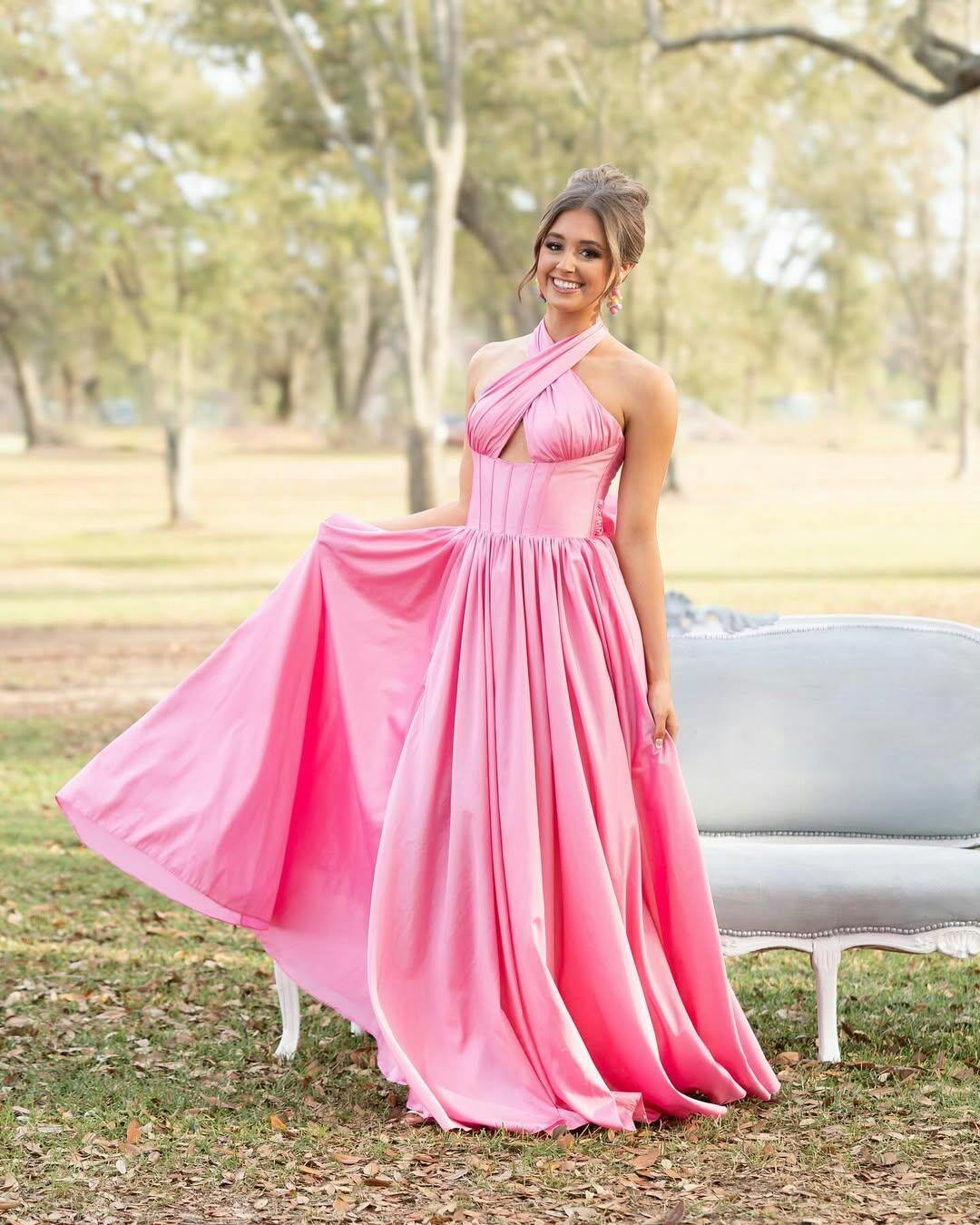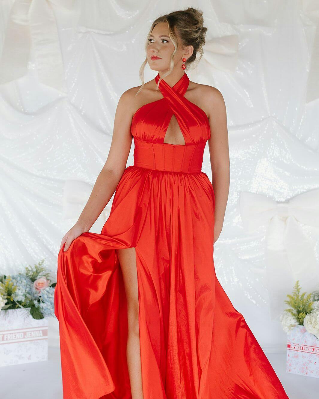 This satin prom gown features boned with crystals on the bodice. The tank top evening dress has a V-neck and pleated hem. This classy ball gown dress is ideal for party, evening or festivals.