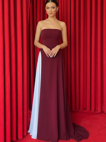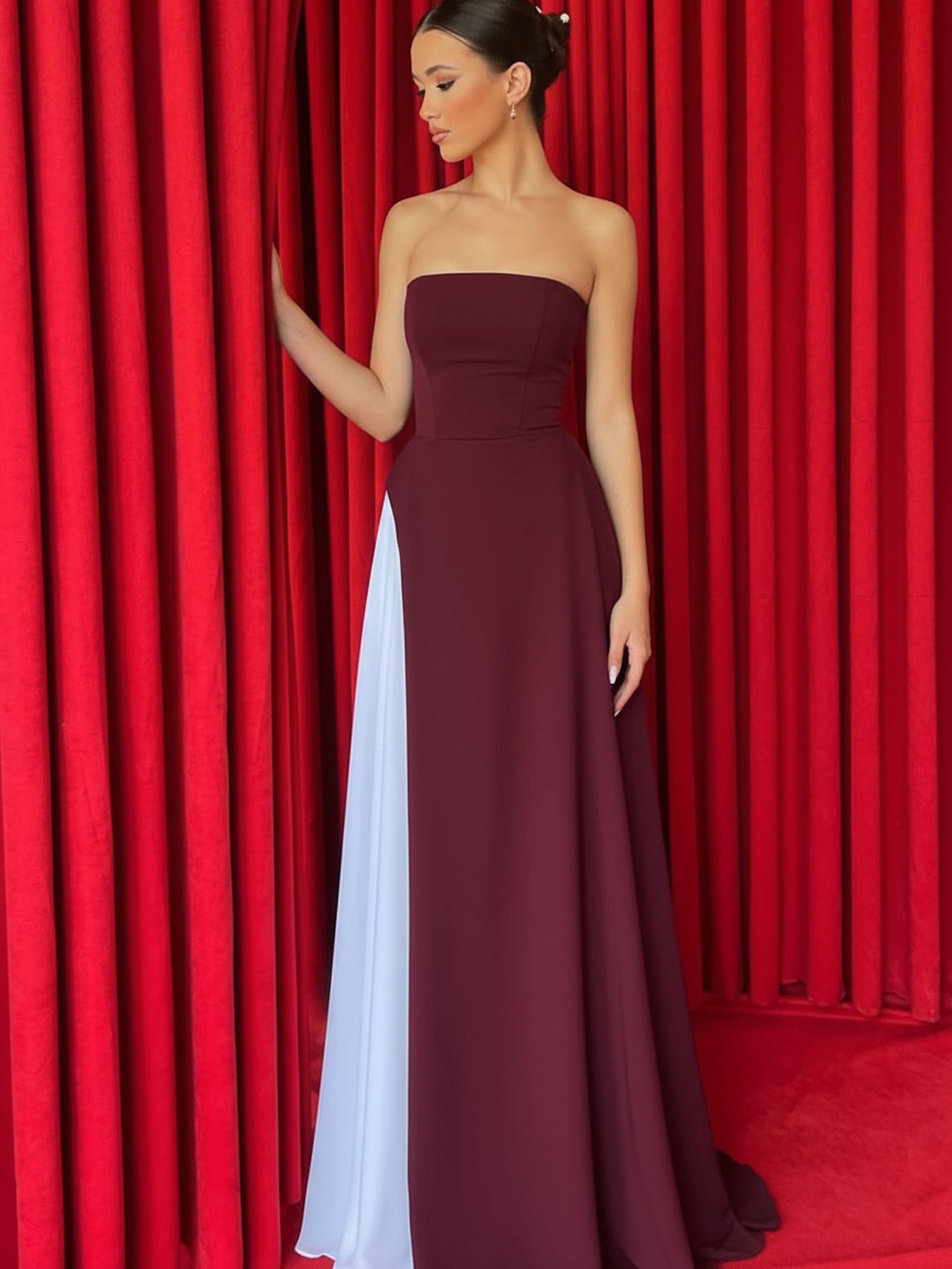 Two Pieces Strapless A-Line Long Prom Dress - Burgundy