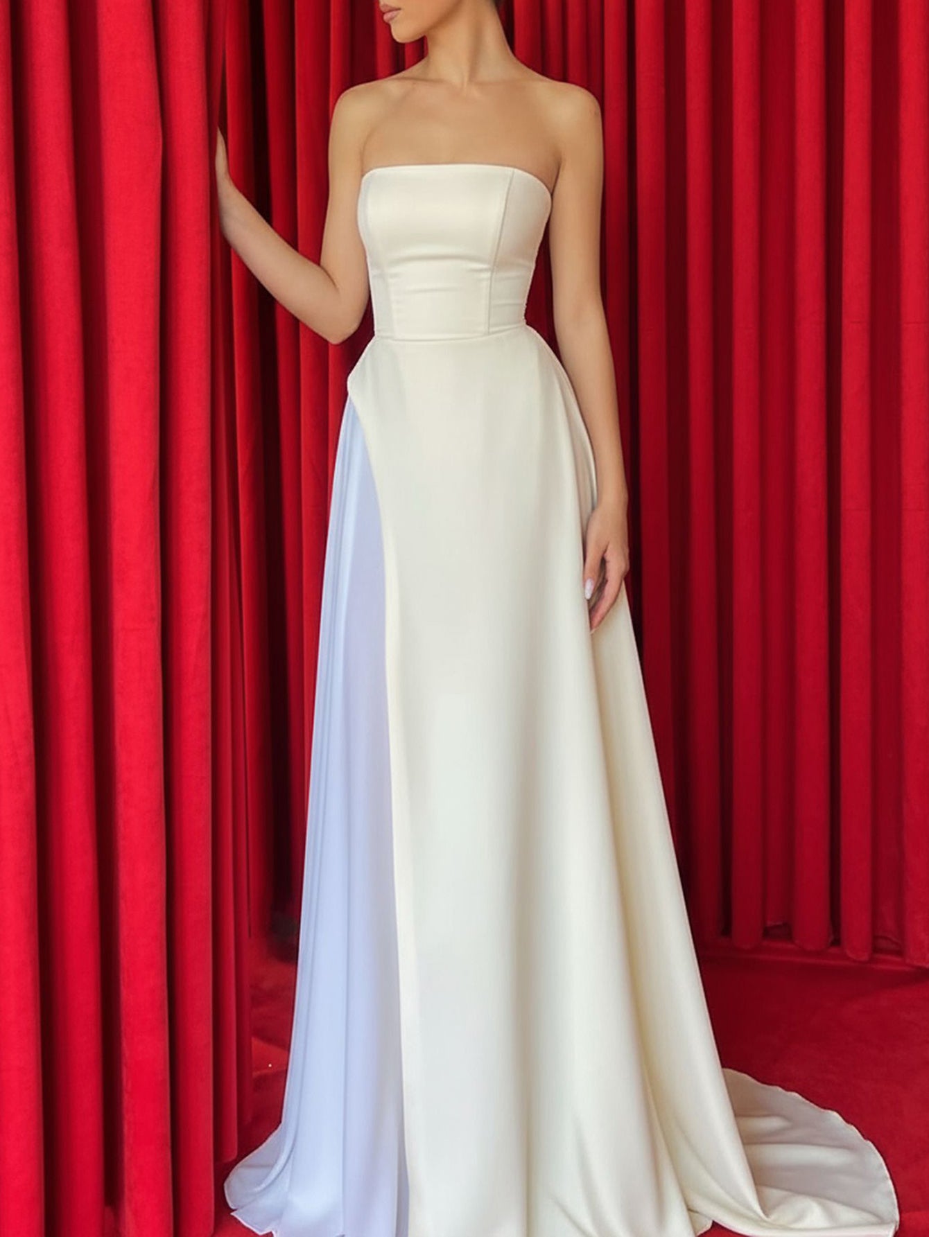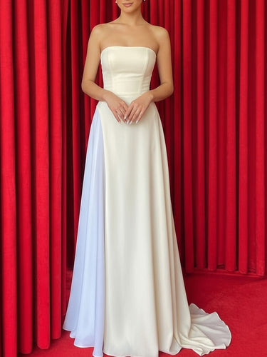 Two Pieces Strapless A-Line Long Prom Dress - Ivory
