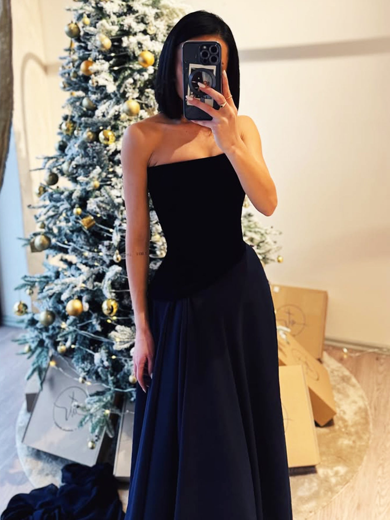 Two Pieces Strapless Bodice Ball Gown Long Prom Dress - Black